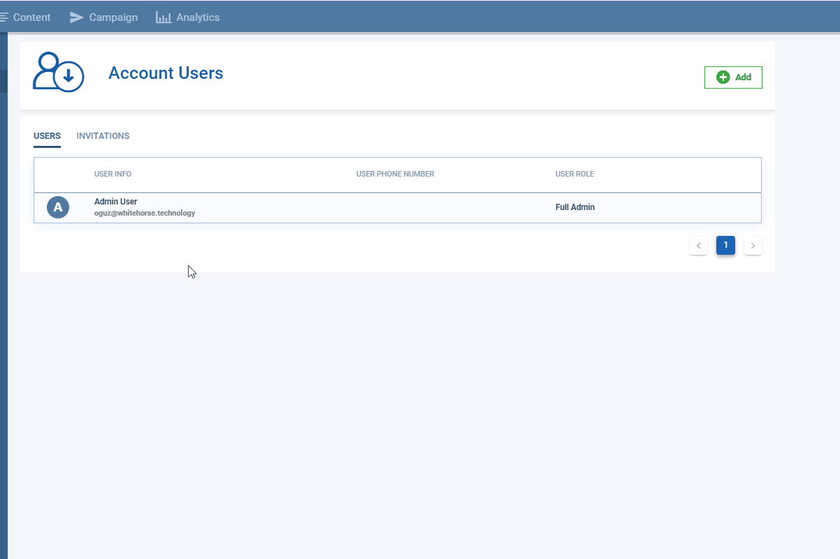 For the invite a new user, you can click the ADD button at upper right corner. After click to this button, you should type an email address and choose a user role for new user.
