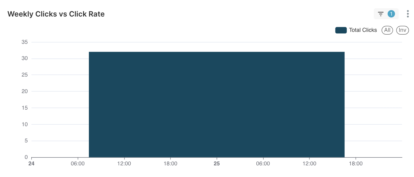 This chart presents the total number of clicks received each week alongside the corresponding click rate.Provides insight into how campaign engagement varies over time.