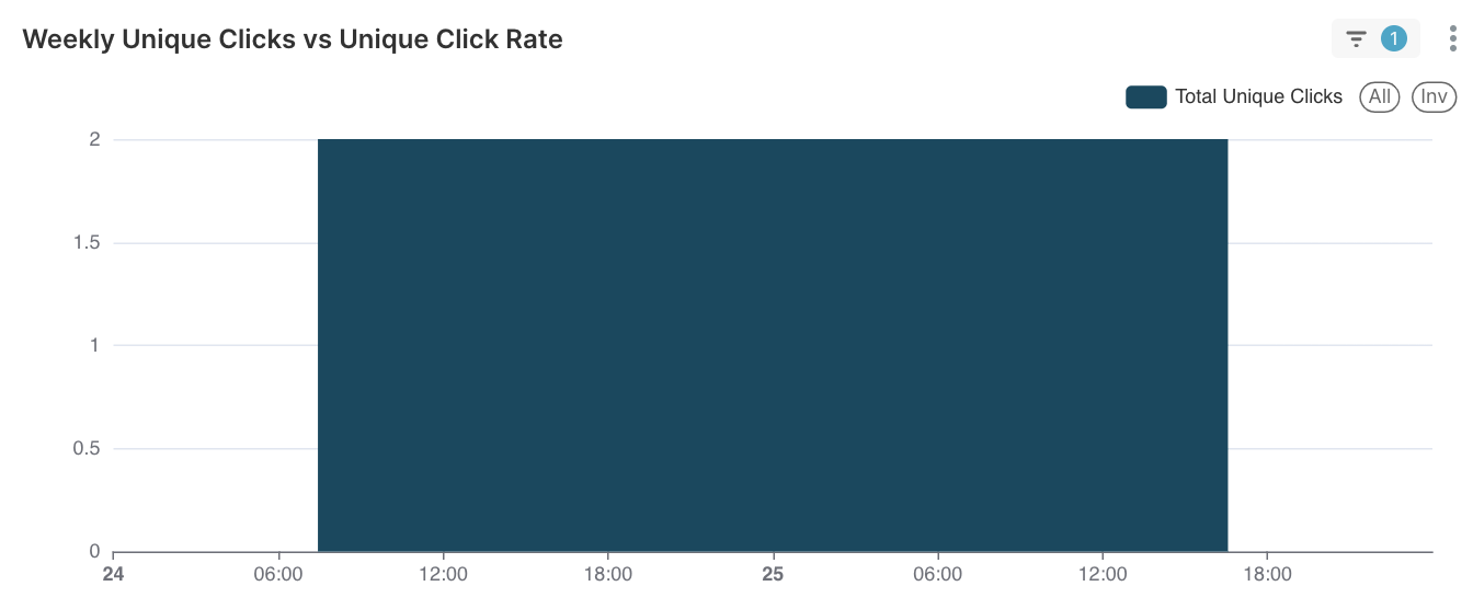 This chart illustrates the weekly distribution of unique clicks and their corresponding unique click rate.Helps users analyze how well campaigns are engaging distinct recipients.