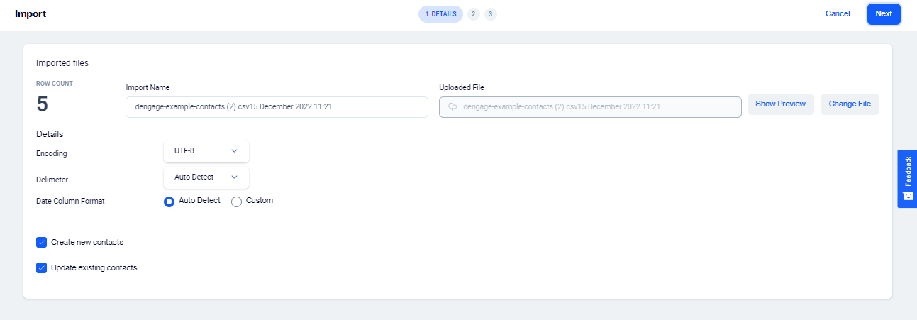 Tags: By clicking the “Next” option from the mapping page, you’ll be redirected to the “Tags” page (in the case of the “contacts” and “token” options).