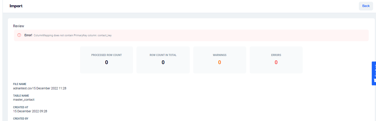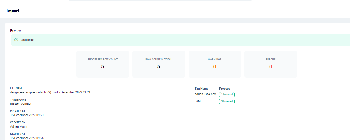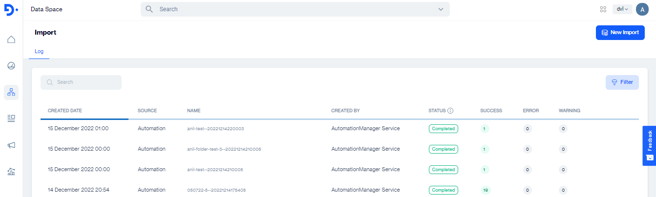 The next status of import can be either “Completed’ or “Error” as shown below.