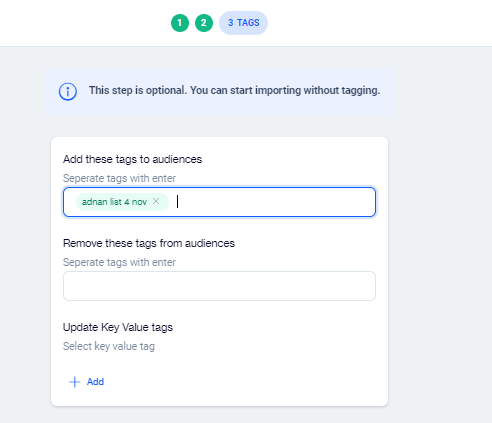 From here, you can add tags to the audience by entering tags into the “Add these tags to audiences” option.