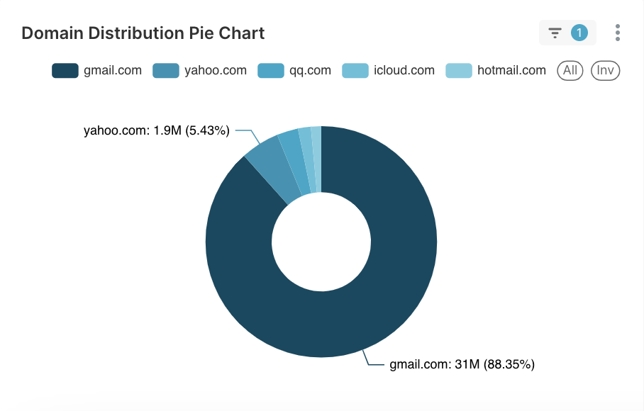 The Domain Distribution Pie Chart visually represents the distribution of email recipients by their email domains. This chart helps you understand which email providers your audience uses the most, allowing you to optimize your campaigns for better delivery and engagement. The chart is divided into segments, each representing a different email provider or domain.