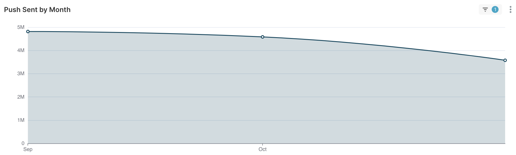 The Monthly In-App Messages Sent chart visually represents the total number of in-app messages sent each month. This allows users to track messaging activity over time and identify trends in in-app communication. Users can analyze fluctuations in message volume and optimize their messaging strategies accordingly.