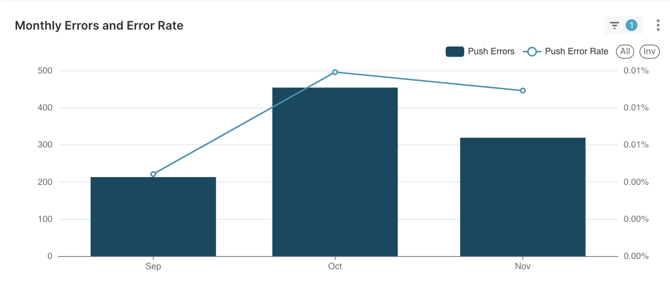 - Unique Display Rate: Percentage of in-app messages sent that resulted in a unique display.