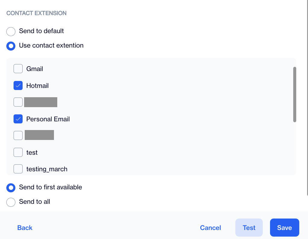 After defining your extension types, you need to add the corresponding contact details (emails or phone numbers) into the system.