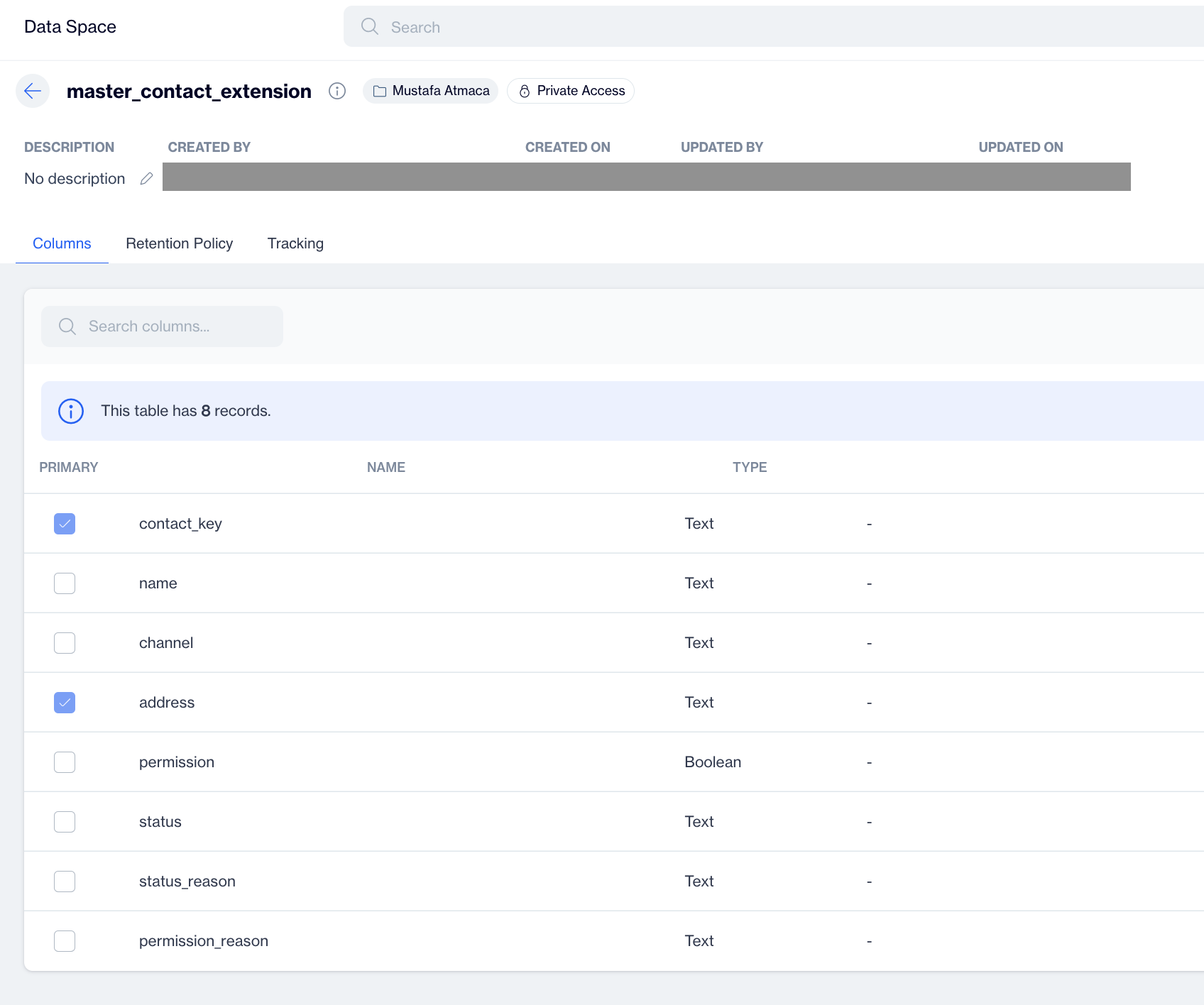 By default, the master contact table holds only one email address and one phone number per contact, along with their related permissions and subscription statuses (such as email and GSM consent).