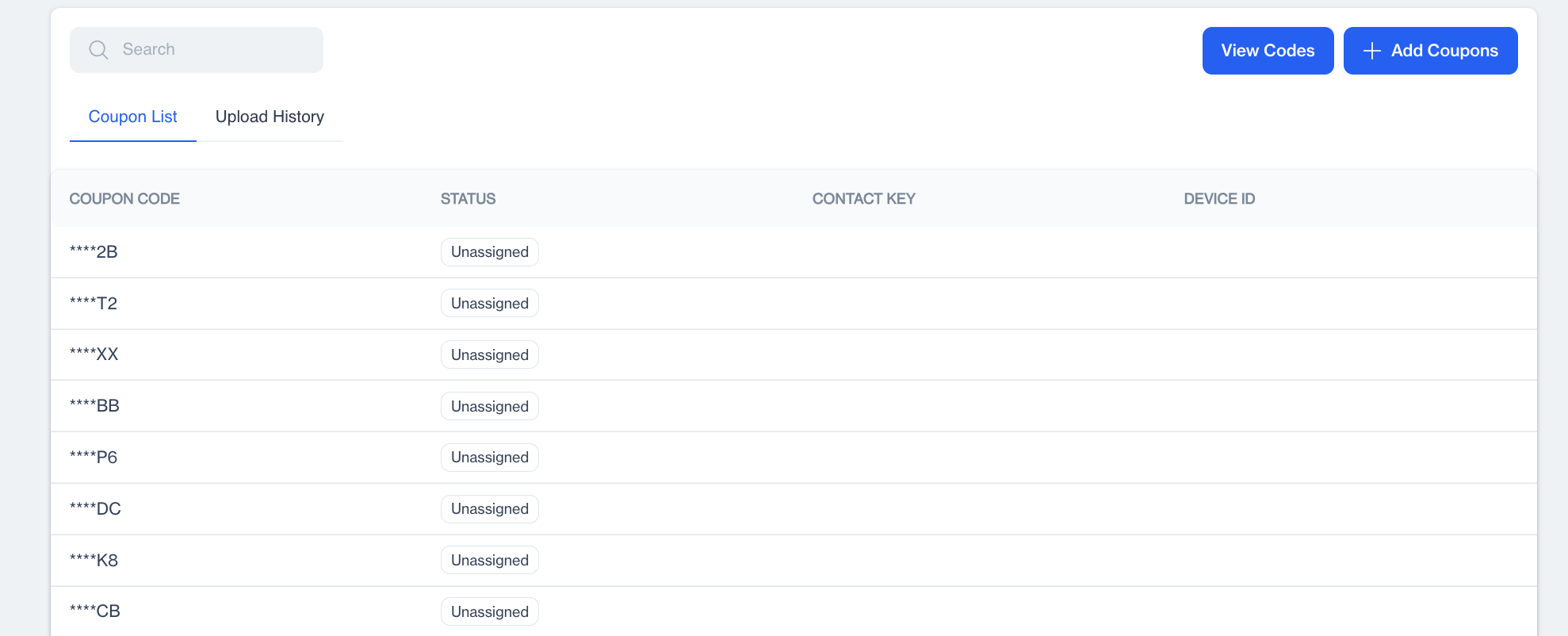 This ensures you can confirm that the list and mapping are correct without exposing actual coupon codes.