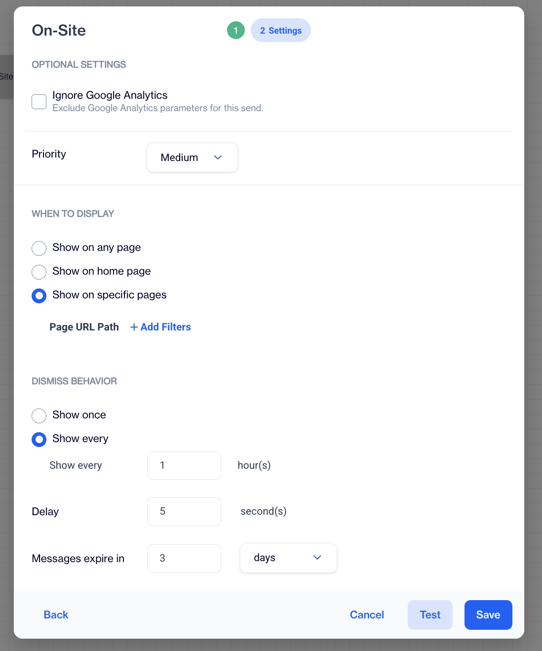 | On-Site | Shows messages or actions (like pop-ups or banners) on your website based on the user’s journey. |