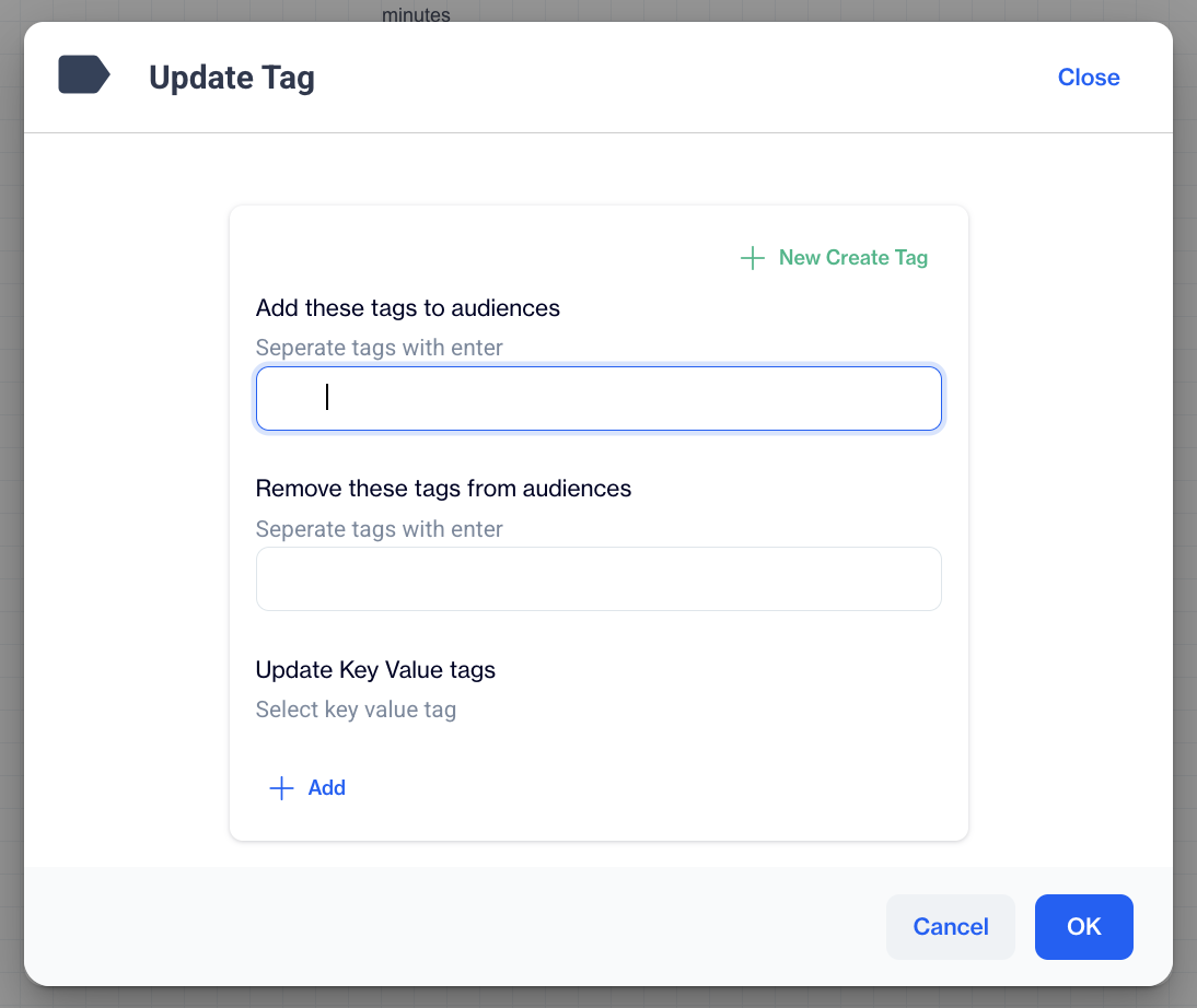 | Update Tag | Adds or updates tags for users. Useful for organizing or targeting users later based on behavior. |