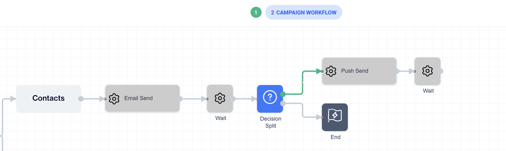 To add a Decision Split to your campaign, connect it immediately after an Action node in the flow.