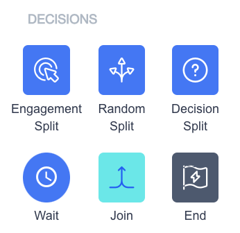 | Decision Split | Sends users down different paths based on specific criteria, like location, purchase history, or specific attributes. |