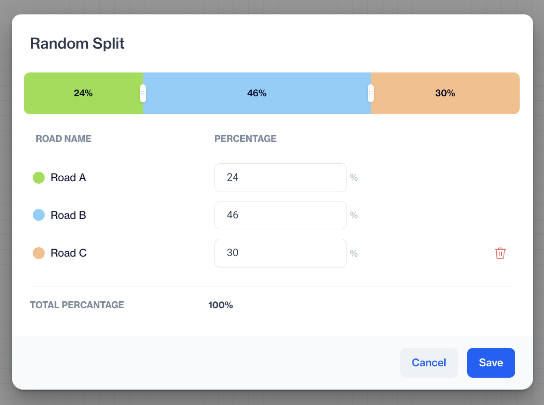 If you want to divide your audience into three paths, click the Add button. This will create a third path where you can enter a new percentage. Make sure the total of all percentages adds up to 100%.