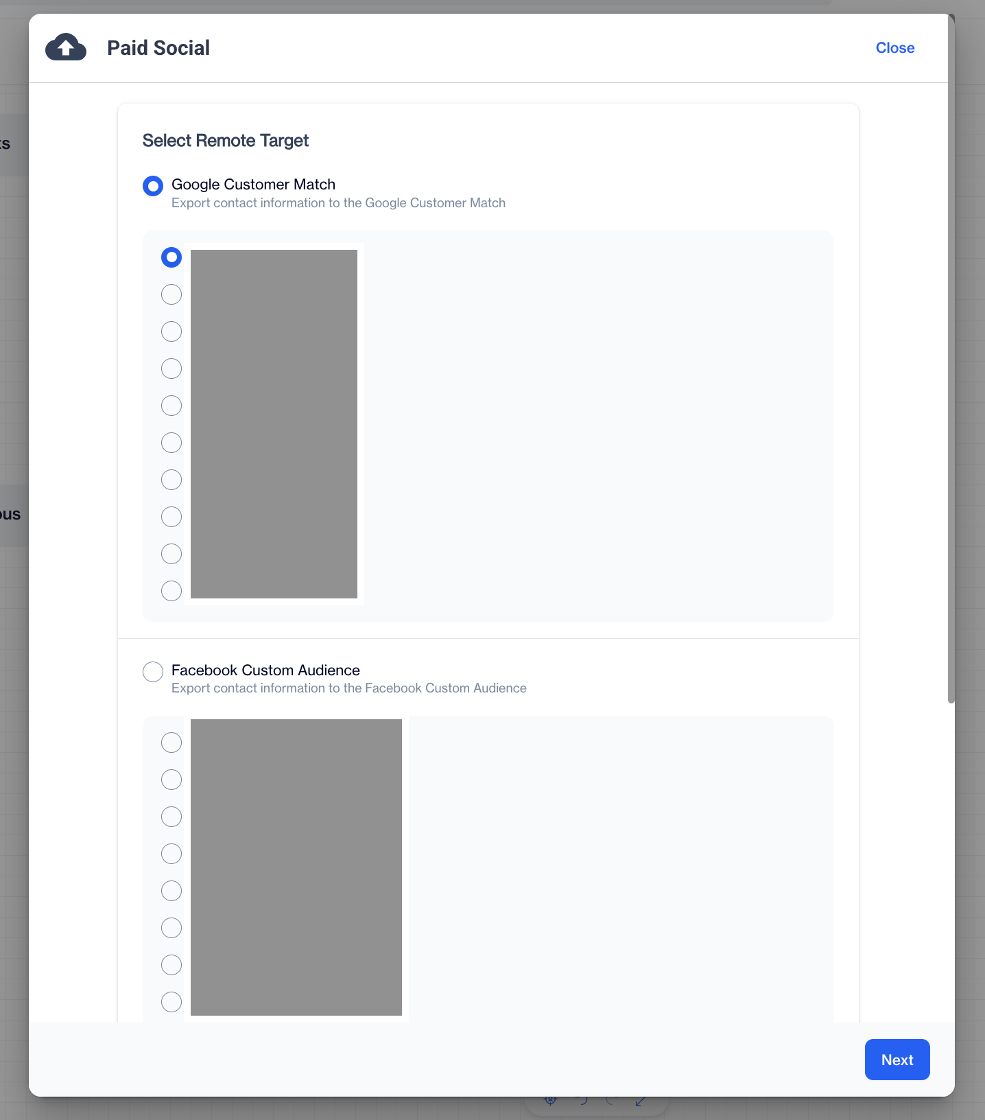 | Paid Social | Adds or removes users from an advertising network audience, such as Google Customer Match or Facebook Custom Audience |