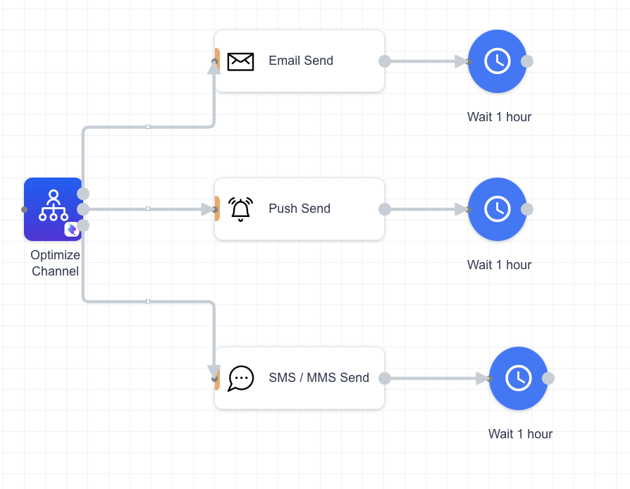 | Optimize Channel | This node selects the most effective communication channel for each user—such as email, SMS, or push notification—based on their past response patterns. If no history exists, it uses your default channel. |