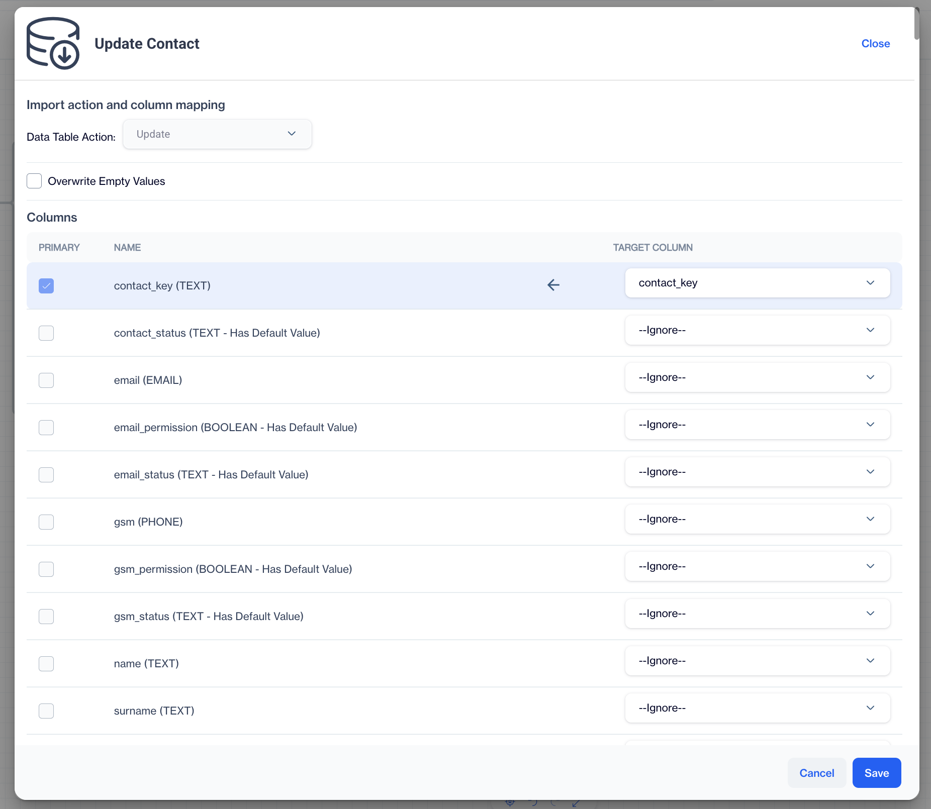 | Update Contact | Updates contact details or attributes, such as status or preferences, based on user actions. |