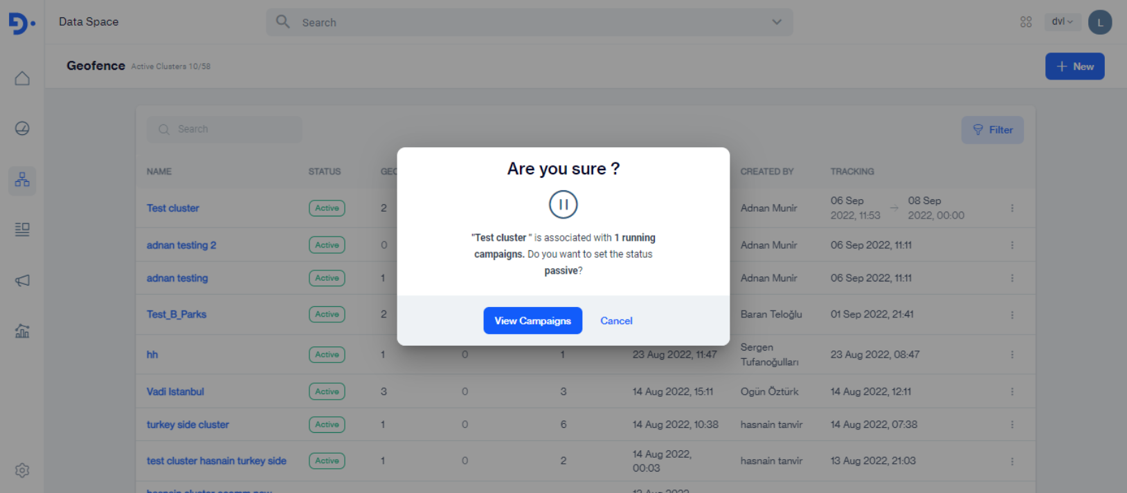Select Geofence under Dataspace > Data management from the left menu bar.