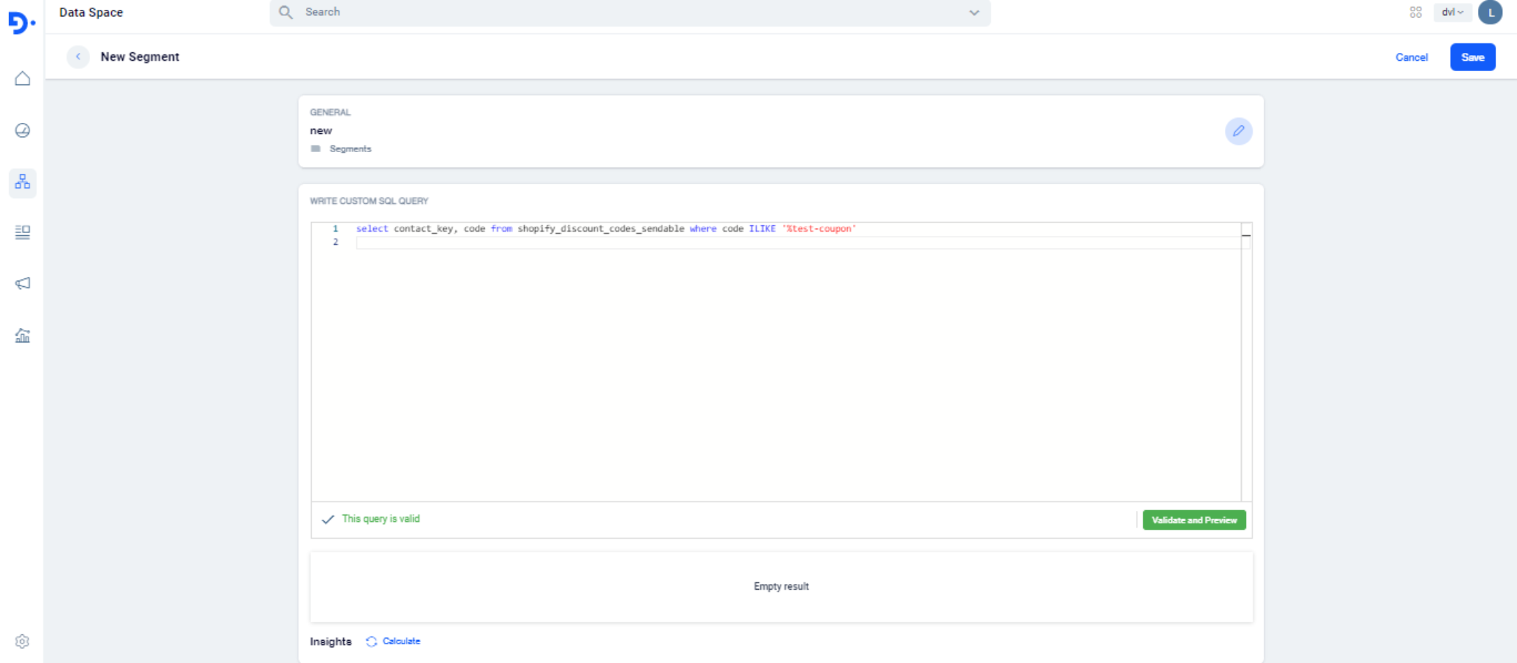 This is how you can identify the coupon in D·engage (e.g., WELCOME). Note that you will need to use this exact name when selecting the coupon in a segment. You can also generate a random code from the “Generate Code” button