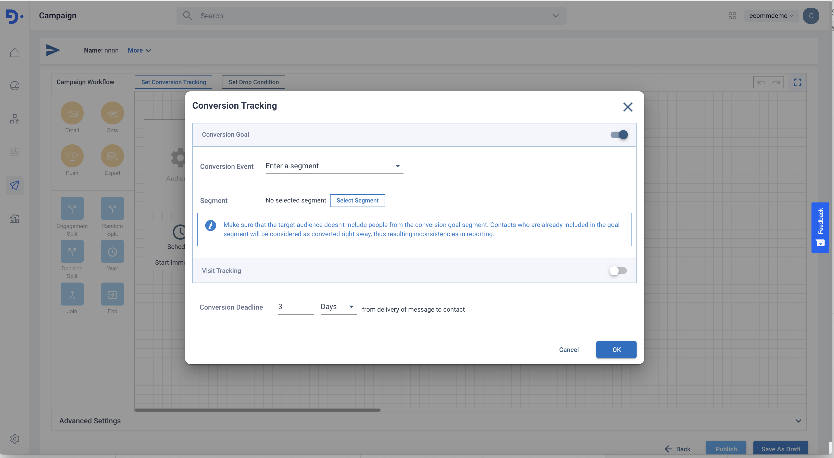 - To access please select "Set Conversion Tracking" from the campaign canvas.