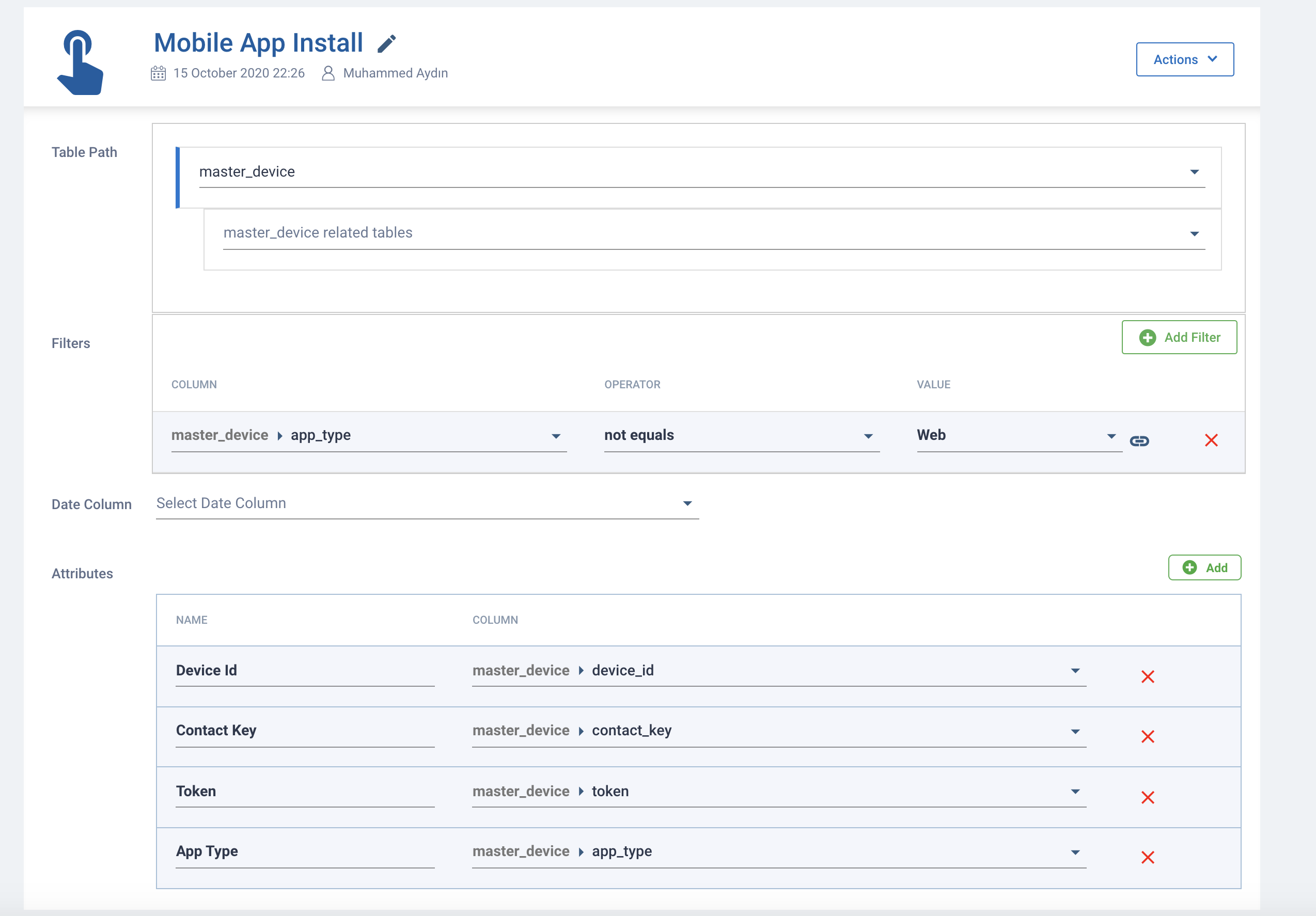 Every record with a date information in any table connected to master_contact or master_device table can be defined as a conversion event. Events can be further refined with filters. From the