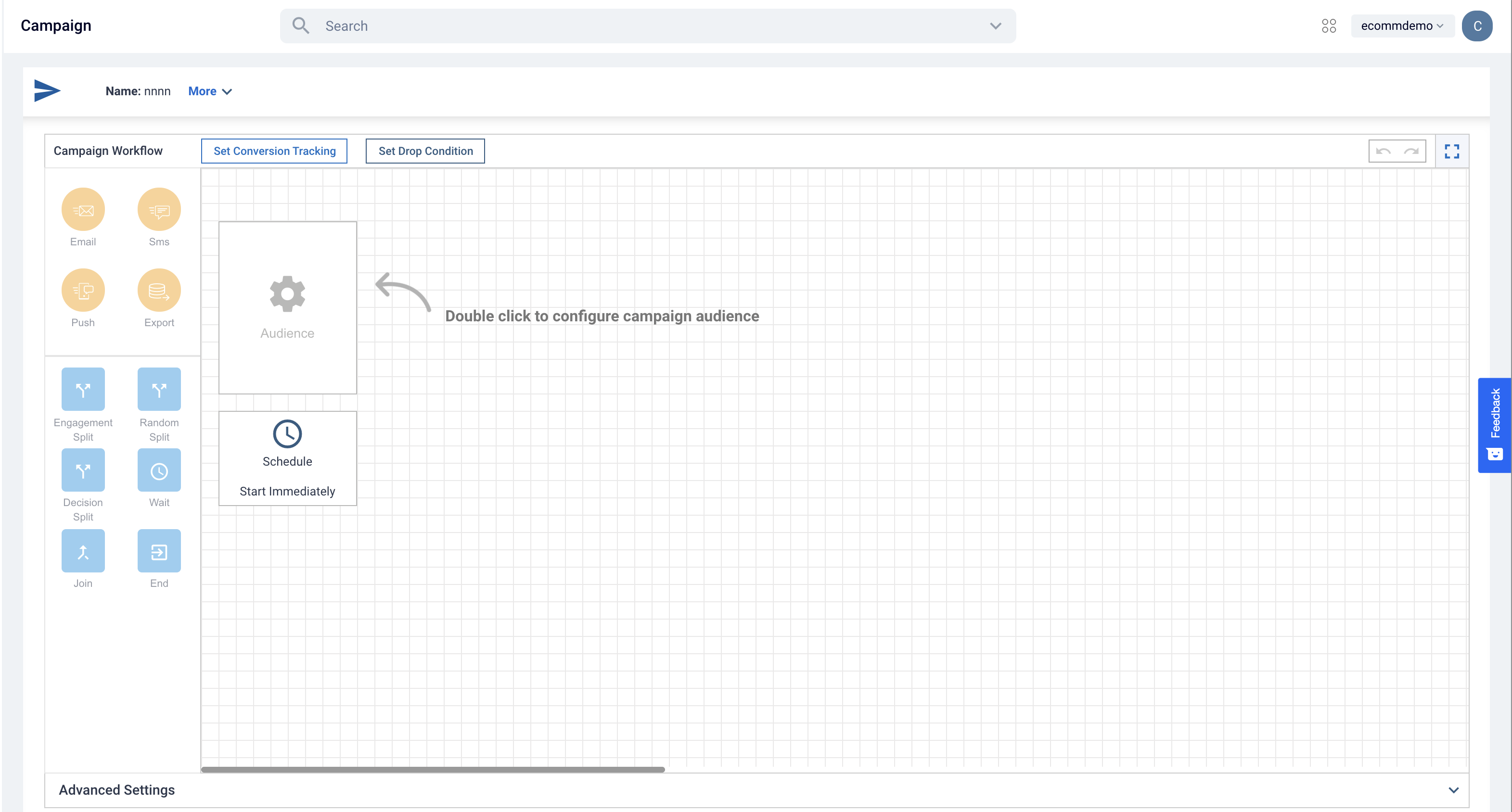 (Email, SMS, Push, Web Push, In-App, Onsite) in your campaign.