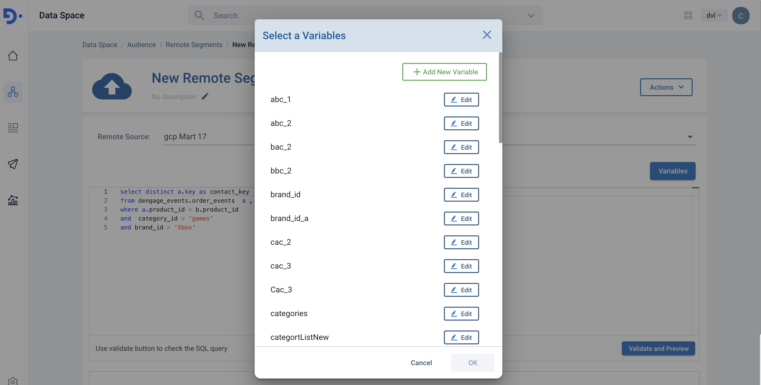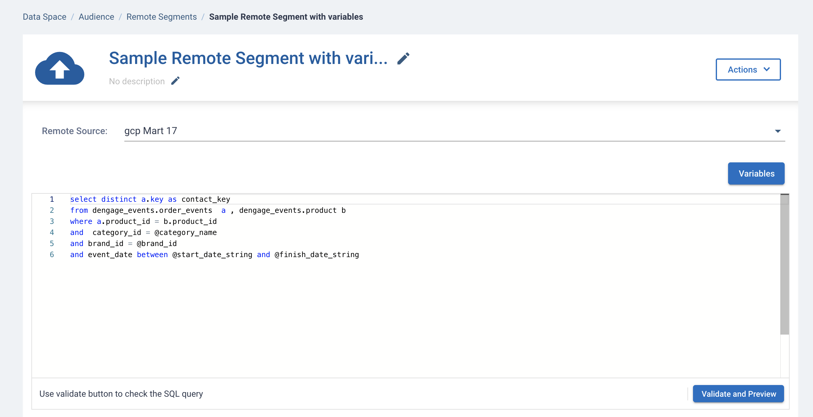 We've added a new feature to the Remote Segments. We now offer the option to add variables to the queries we run against Remote Data Sources such as Google Big Query, Amazon Redshift, Microsoft SQL, and Oracle.