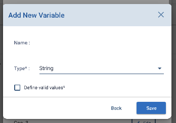 | String List | Single String Value | You can also create a valid value list. You can select multiple values if you create this type of variable. ex. to use in IN SQL clause |