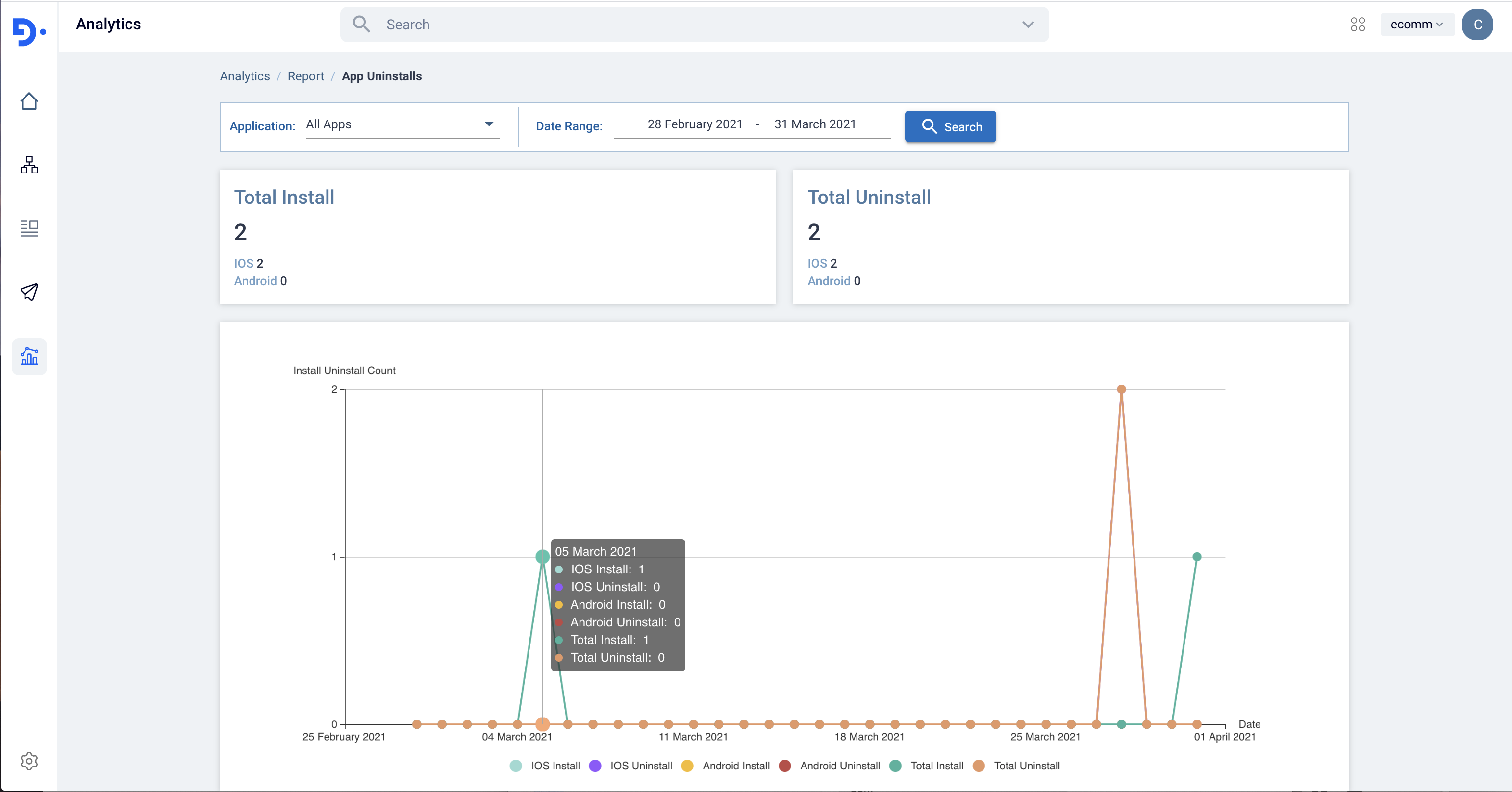 It is essential to analyze the number of installs, uninstalls, and active users to run marketing campaigns effectively in the mobile app world. For this reason, we've added app uninstall tracking and reporting to the D·engage platform.