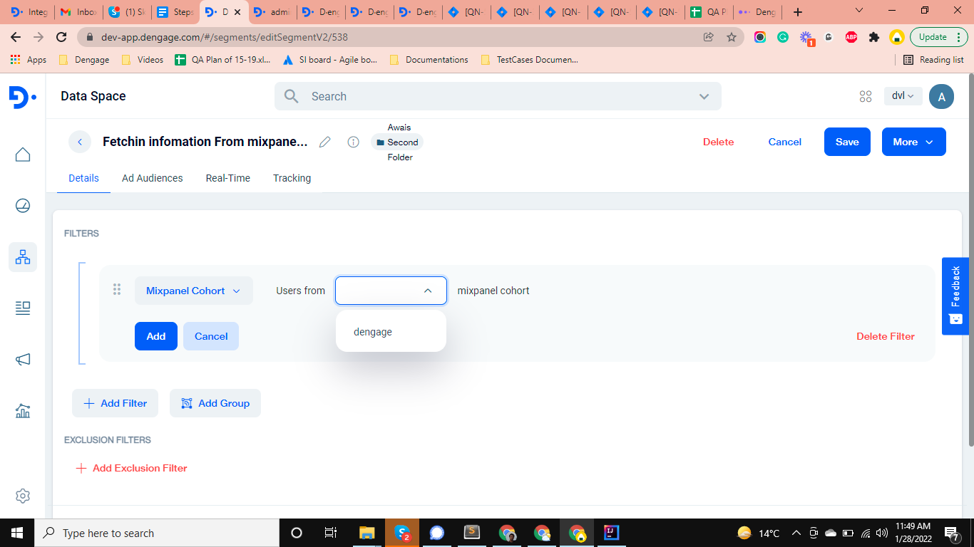 Once your Mixpanle account is integrated with Cdmp and the cohorts are synced, you can use these cohorts in segments.