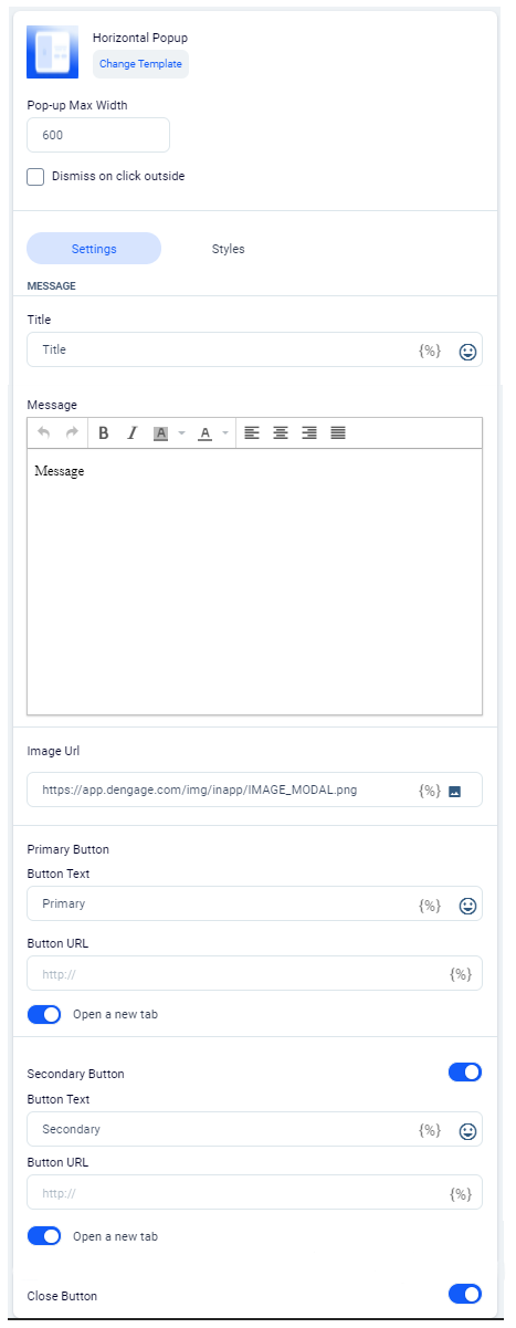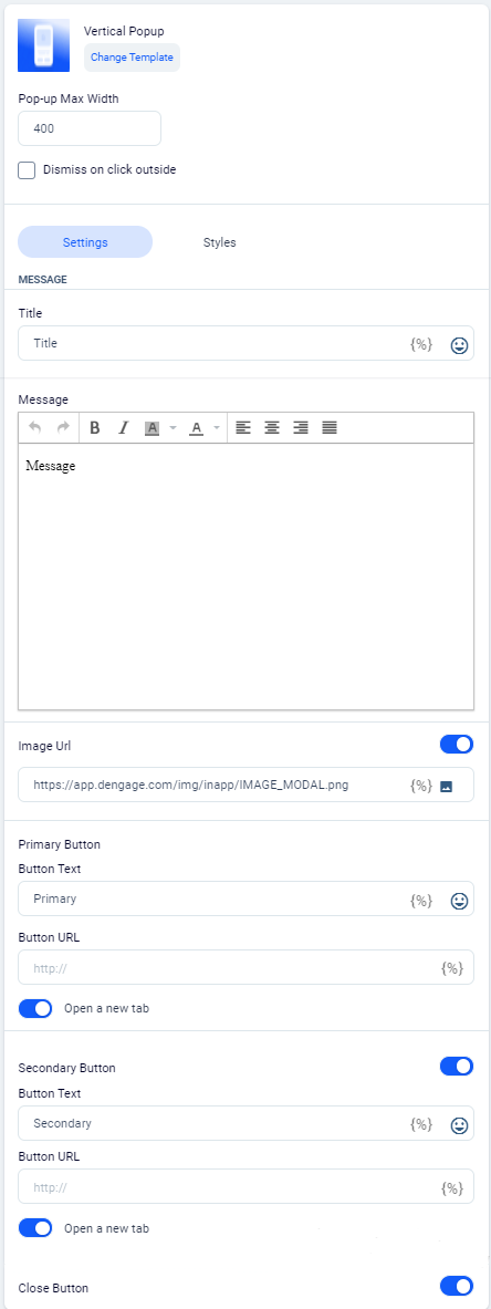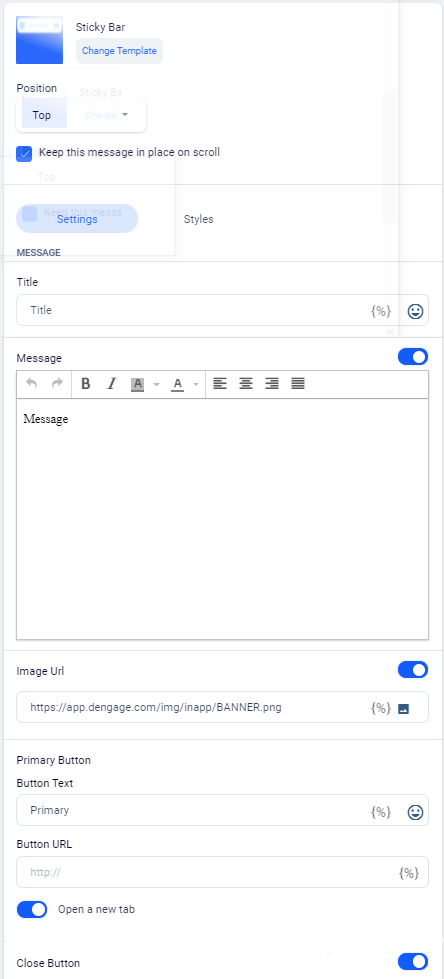 Open in new tab and close options: “Open In New Tab” and “Close Button” options are enabled by default. You can disable these options according to your needs.