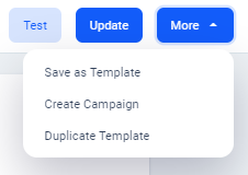 More options: By clicking the “More” option three options are shown “Save as Template”, "Create Campaign” and “Duplicate Template”.