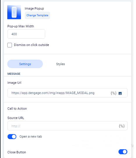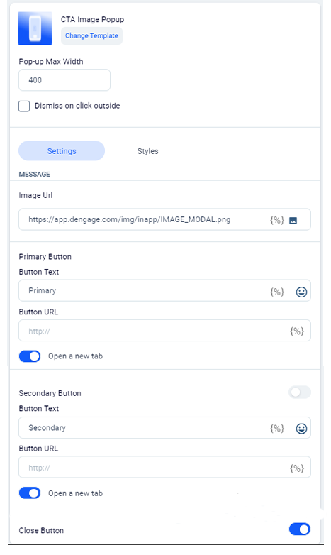 ● Open in new tab and close options: “Open in New Tab” and “Close Button” options are enabled by default. You can disable these options according to your needs.