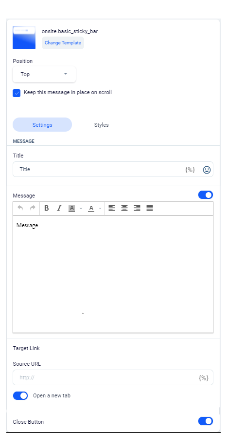 Create your message under Description: You can choose to add rich text as an HTML/CSS code or simply add plain text to the message. By default “Message” option is enabled, you can also disable the message option.