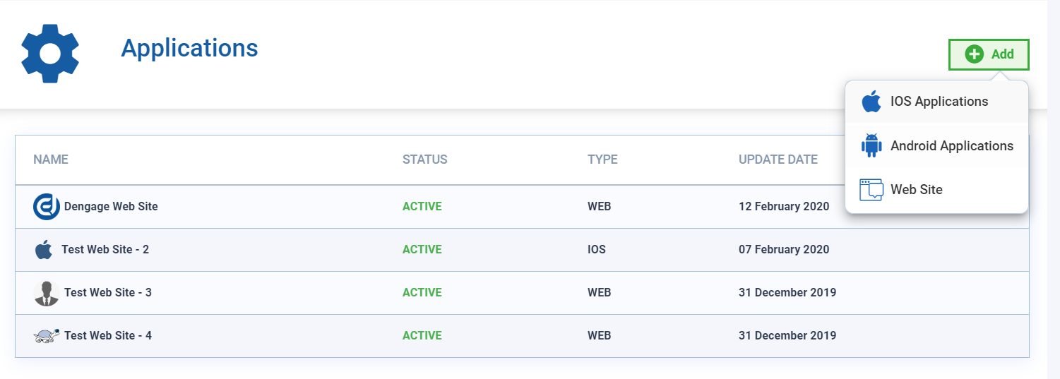 1.1 From the D·engage admin panel go to Settings > Applications and select “Add a New Website”