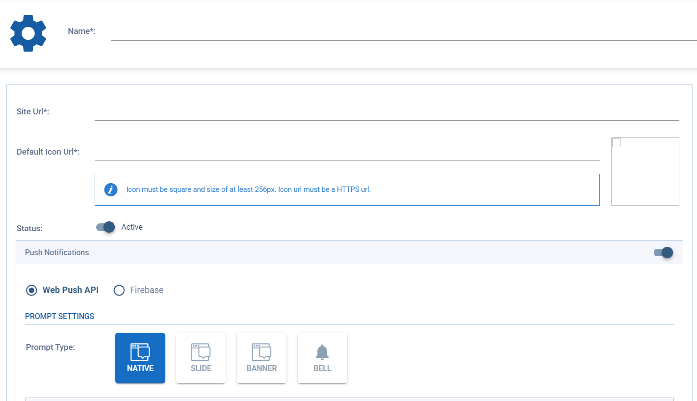1.2 Enter your website and default logo URL and enable Push Notifications