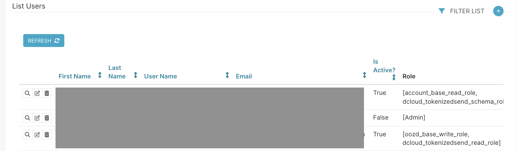 - List Users – Displays all registered users along with their details, such as name, email, active status, and assigned roles.