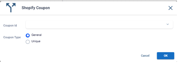 Enter coupon id, select coupon type as general or unique, and hit the Ok button.