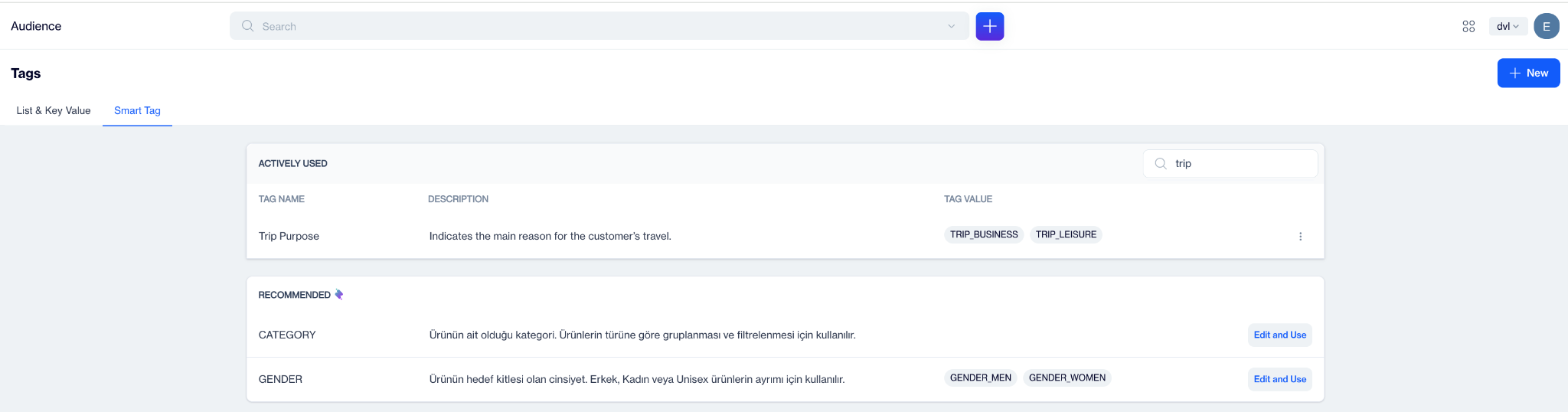If needed, you can edit the recommended tag to better match your use case. Once you are ready, you can click Edit and Use to activate the tag. After activation, the tag will move to the Actively Used Smart Tags section and become available across the platform.