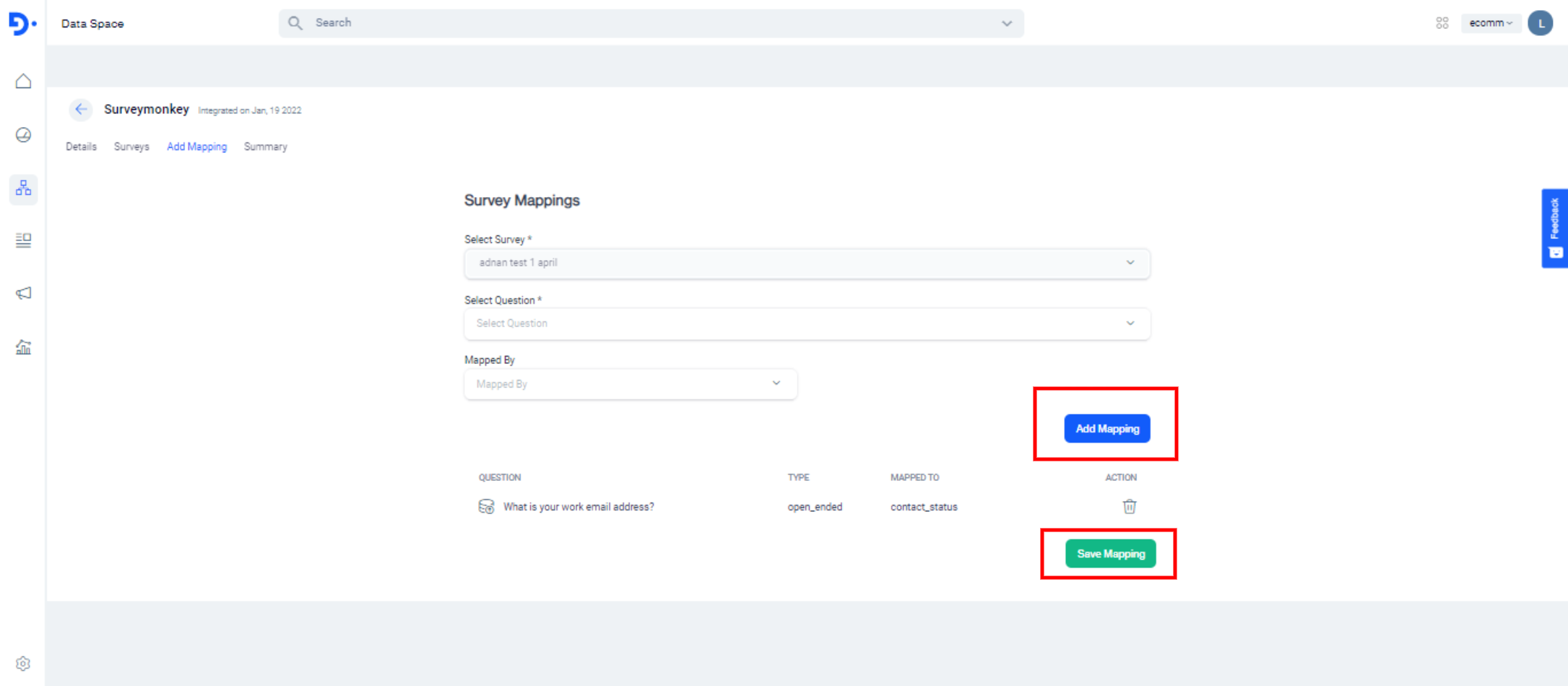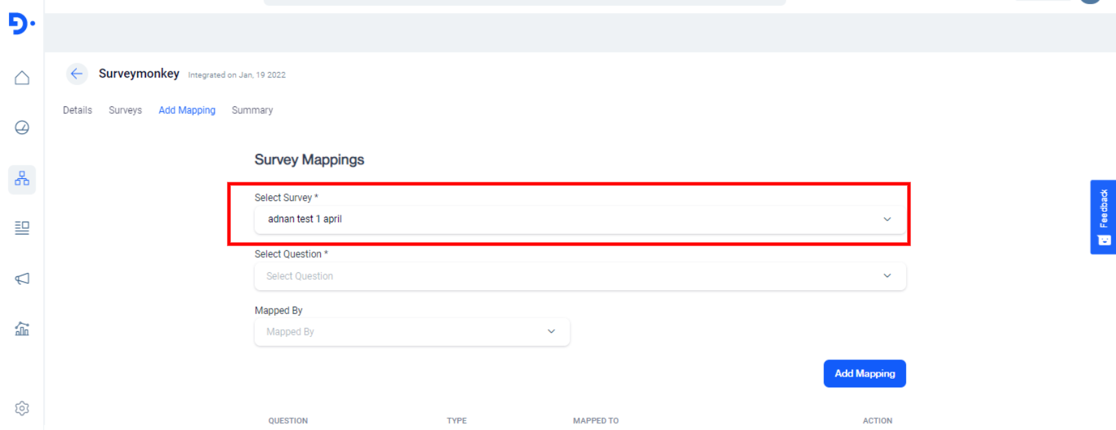 You can also delete a mapping of a specific survey by clicking on the delete button.