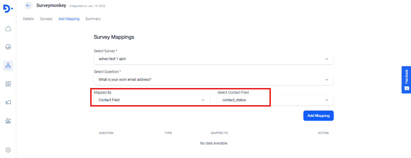 The third tab is “Add Mapping”. You can map every question to either Tags or Contact fields of the master_contact table.