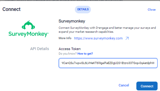 To connect your survey monkey account, you need to enter “Access Token”