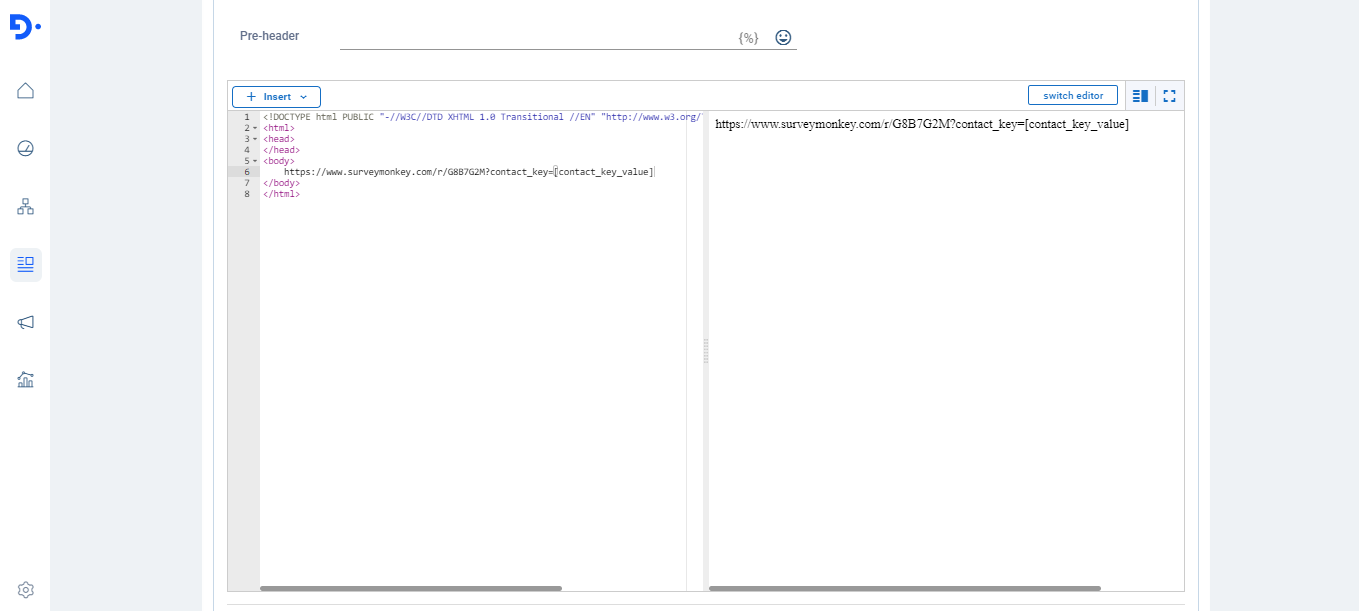 Once you are ready to send out the Survey in the campaign, you can include contact_key in the Survey URL by following these steps.