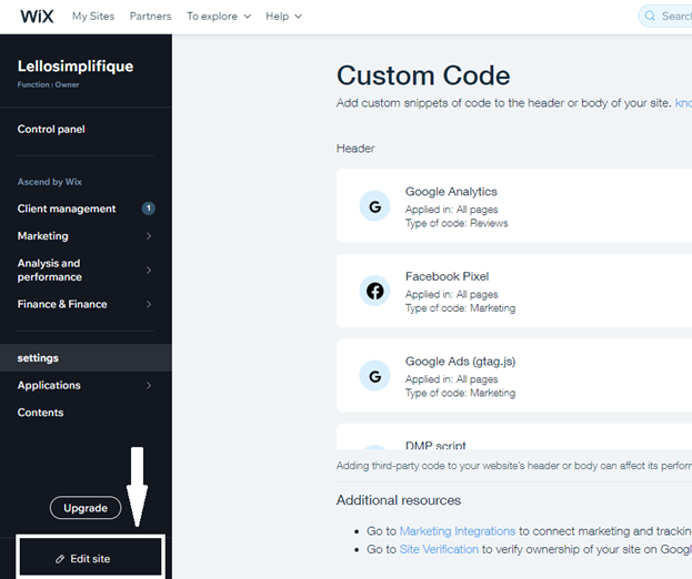 3. Wix Account: Log in to your Wix account. Select the Edit site.