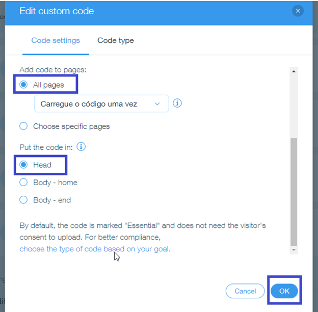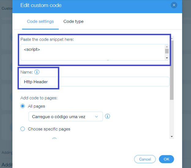 Code Name It to (HTTP Header) and Code Type should be Essential.