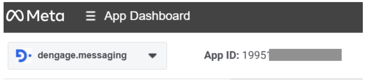 For the App ID field, log in to your Meta Developers Account, navigate to Meta > WhatsApp, and locate the App ID at the top-left corner of the screen. Copy this App ID and paste it into the "App ID" field on the Dengage configuration screen, then continue filling in the remaining required fields using the information provided in your Meta account.