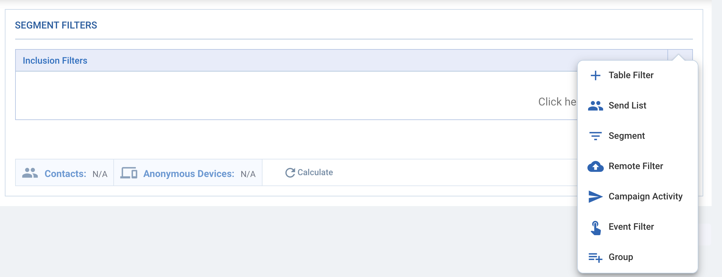 New filters have been added to Interactive Segments: Campaign and Event Filters.