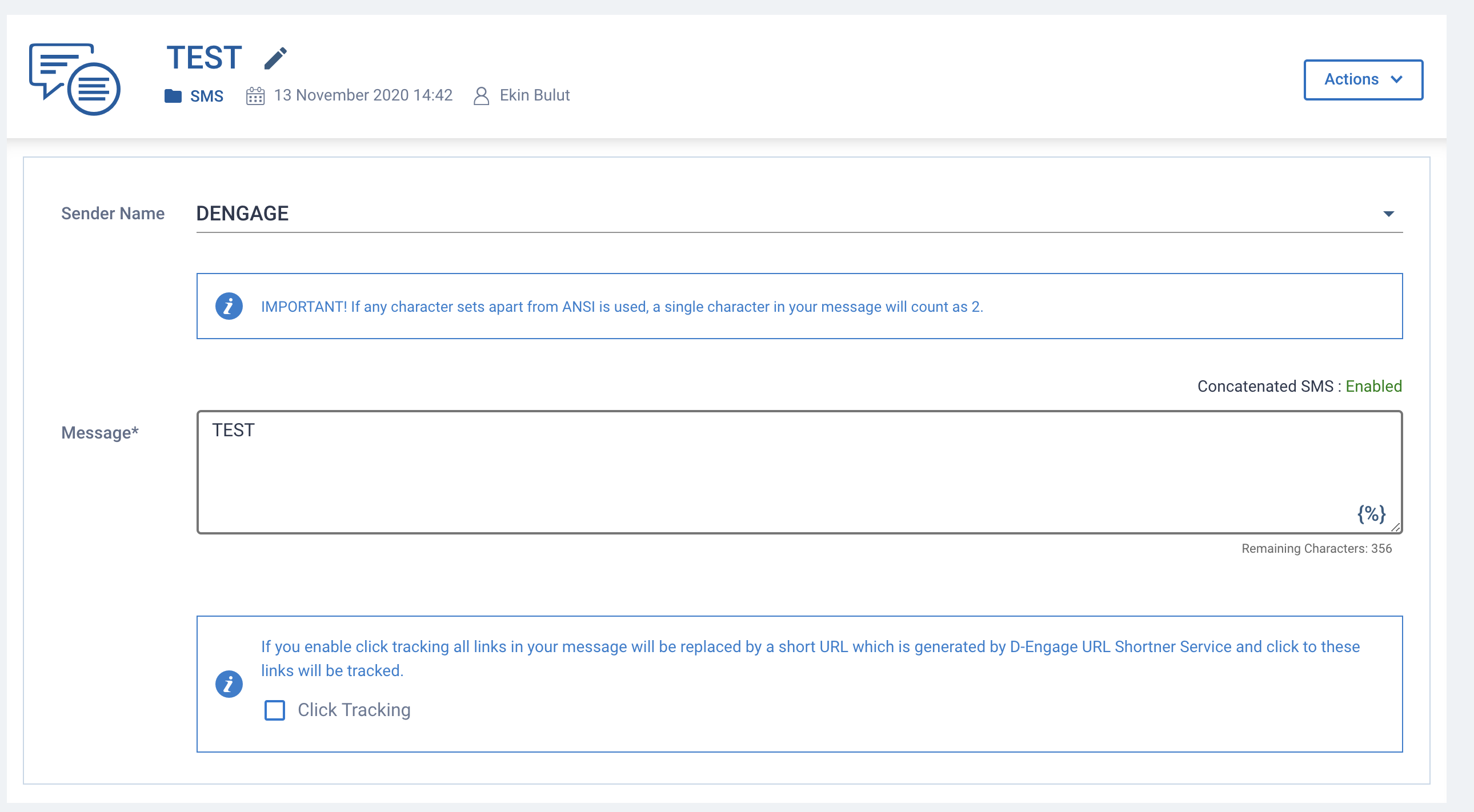 D·engage now supports link shortening: and can convert URLs you provide in SMS messages to unique, 25-character links for each SMS message recipient in your audience. Shortened links save space in your messages, helping you interact with your audience and reducing the overall cost of SMS engagement.